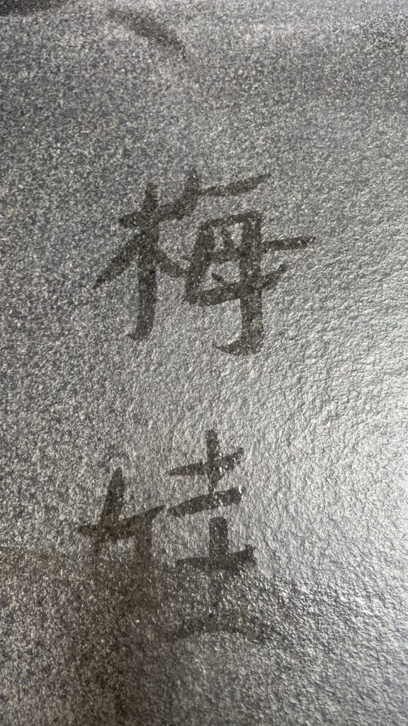 À l’extérieur de la boutique, une table en pierre avec des pinceaux et de l’eau permet de s’essayer à la calligraphie. Hsin y écrit alors nos noms en caractères mandarins, et nous tentons, tant bien que mal, de les reproduire. À le voir faire, cela semble si facile et si beau, et pourtant, il nous assure qu’il n’est pas bon en calligraphie.