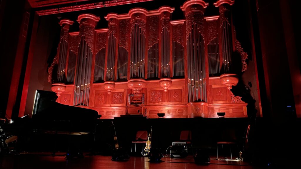 Nous arrivons devant la salle de concert, que nous avions déjà vu la semaine dernière. Cette fois-ci nous découvrons l’intérieur, tout aussi beau. Lorsque nous nous installons, nous découvrons que nous sommes au premier rang, quasiment au milieu. Nous ne pouvions pas rêver mieux, l’excitation est à son comble.