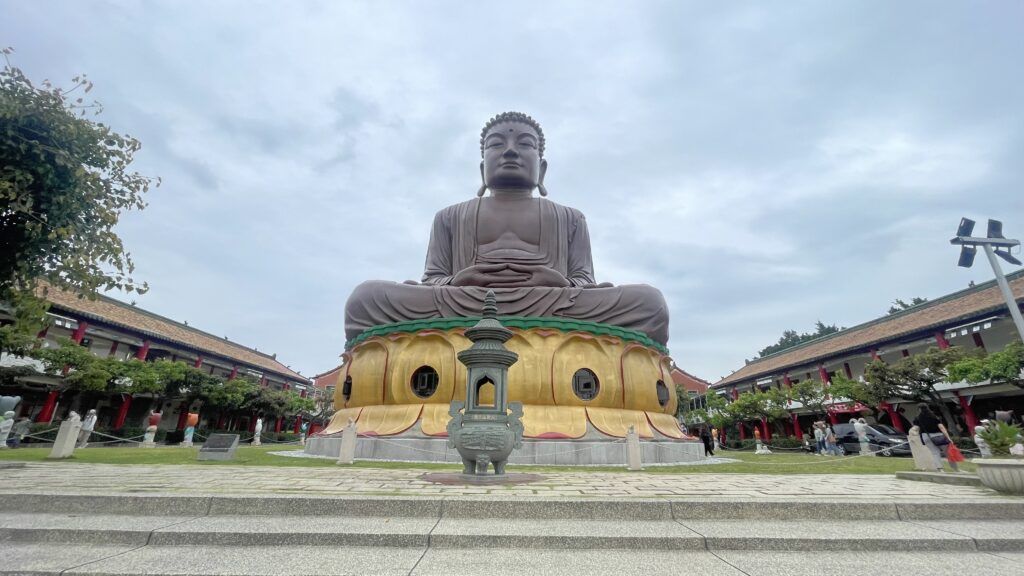 Ensuite, nous allons juste à côté en haut d’une colline et nous découvrons le Eight Trigram Mountains Buddha qui mesure 22 mètres de haut. Il est tellement haut que l’on peux le voir depuis la maison de Hsin. Nous faisons un détour pour aller chercher des raviolis frits qui sont excellents en guise de snack.