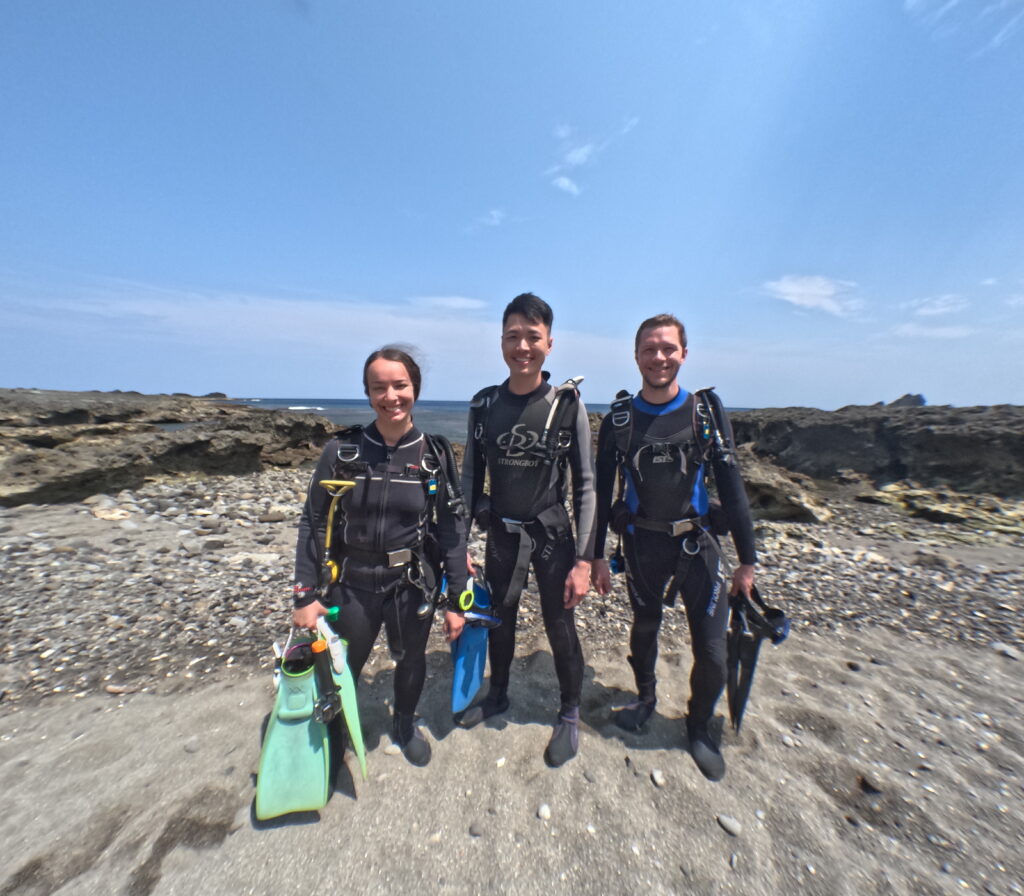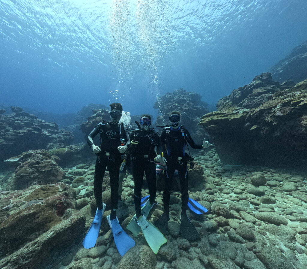 Ce matin, nous retournons au centre de plongée. Clem et Hsin révisent les signes basiques de plongée, tandis que Mav prépare son matériel avec son guide, qui ne parle pas anglais. Cela ne la rassure pas vraiment, et Google Traduction devient son meilleur allié dans cette situation.